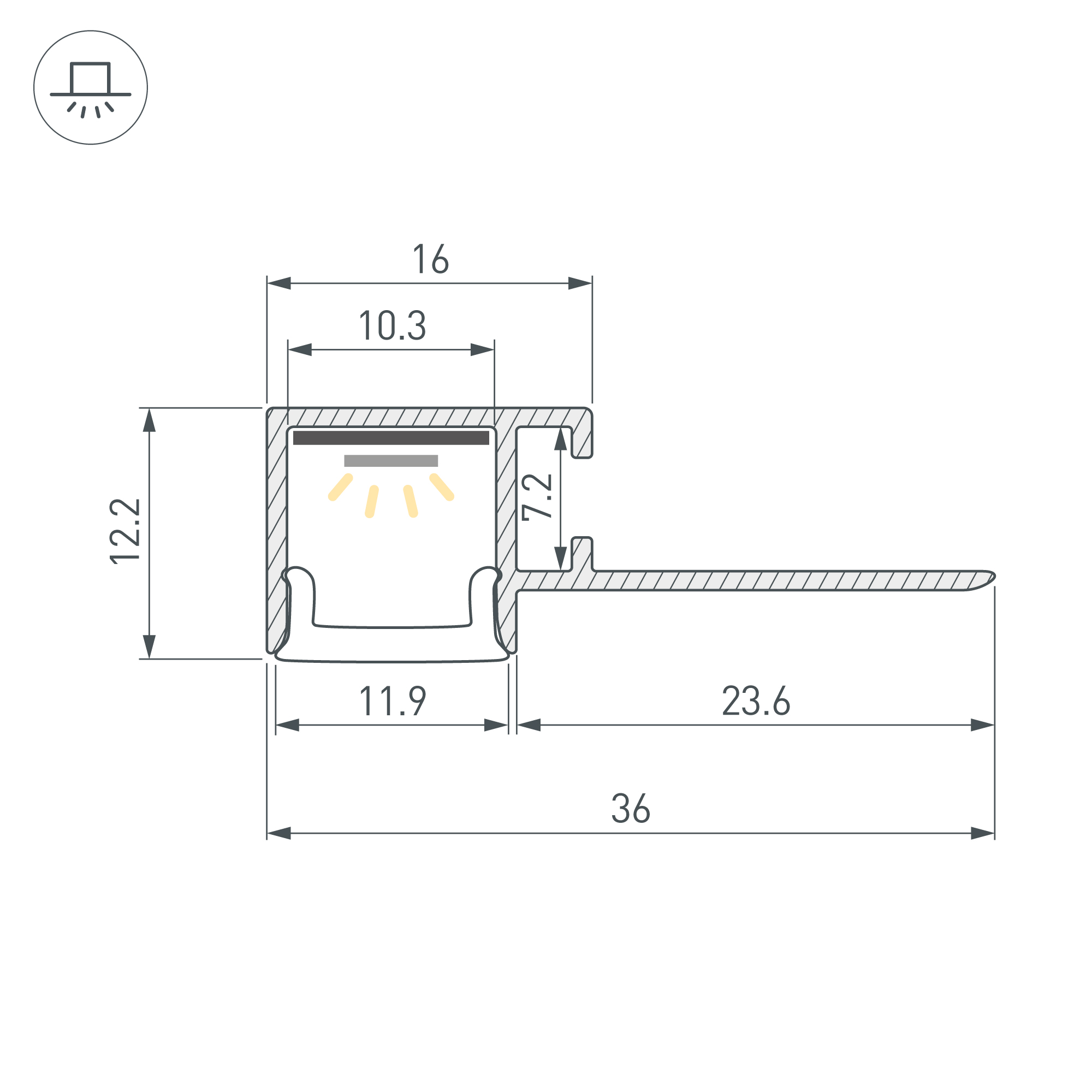 Встраиваемый профиль из анодированного алюминия со скрытым фланцем под строительную отделку устанавливается в потолки и потолочные ниши из гипсокартона. Габаритные размеры профиля составляют 2000 мм в длину, 36,2 мм в ширину и 13 мм в высоту. Площадка для установки светодиодных лент позволяет использовать ленту шириной до 10,3 мм и мощностью до 24 Вт/м. Это обеспечивает гибкость в выборе светодиодных лент и создает потрясающие световые решения. Совместим с гибким алюминиевым профилем FANTOM-BENT-W12-TOP-EDGE. Сочетание разных видов профиля поможет подчеркнуть как прямые, так и изогнутые контуры интерьера, а также создать волнообразные линии, переходящие с потолка на стены. Экраны, заглушки и другие аксессуары не включены в комплект и приобретаются отдельно. Цена указана за 1 метр профиля. Перед установкой профиля в гипсокартон ОБЯЗАТЕЛЬНО установите в профиль экран.