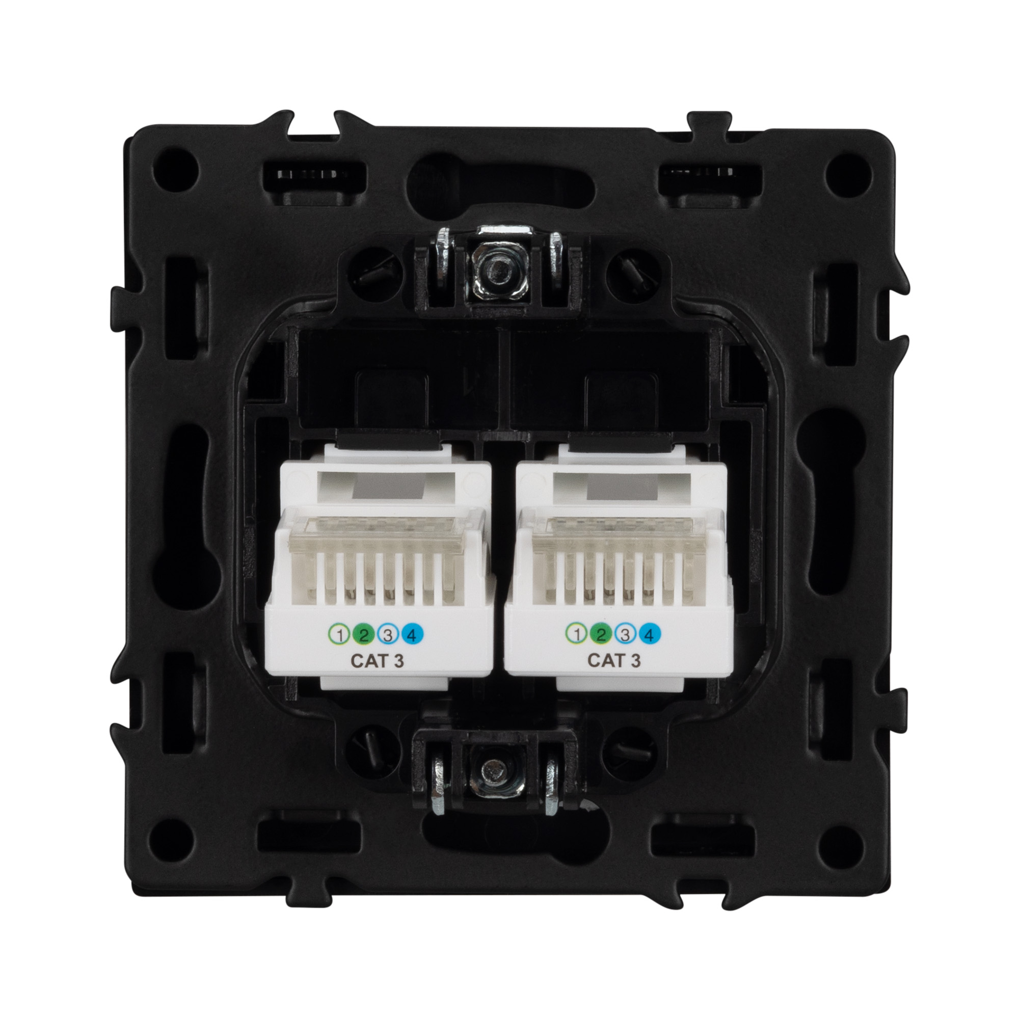 Строгие геометрические линии гармонично сочетаются с функциональностью продуманных механизмов, создавая идеальное решение для дизайн-проектов, где важны как эстетика, так и практичность. Механизм сдвоенной телефонной розетки совместим с рамками серии NOBE, создает утонченный минималистичный вид. Скрытый тип монтажа позволяет гармонично встроить в интерьер любого современного дизайн-проекта. Видимая часть механизма выполнена из высококачественного пластика цвета серый базальт и имеет Soft-Touch покрытие, что придает изделию приятные тактильные ощущения и стильный внешний вид. Выходной порт RJ-11 (Female) формата 6P4C соответствует категории 3 (Cat.3). Самозакрывающаяся крышка защищает выходной порт от повреждения и загрязнения внешних контактов разъема. Контактная часть выполнена по технологии IPC (изоляционно–пробивающего контакта) с нанесением цветной маркировки схемы разводки на корпус, позволяя быстро и легко подсоединить механизм компьютерной розетки к большинству многожильных кабелей типа UTP (неэкранированные). А усиленные распорные лапки двойного захвата надежно фиксируют механизм в установочном подрозетнике круглого сечения диаметром 60мм. Суппорт окрашен в черный матовый цвет под основу механизма и выполнен из металла толщиной 1,5мм, что обеспечивает безопасность и уверенность в установке. На каждой стороне суппорта размещены фиксирующие элементы, позволяющие комбинировать механизмы в системы до 5шт как горизонтально, так и вертикально.