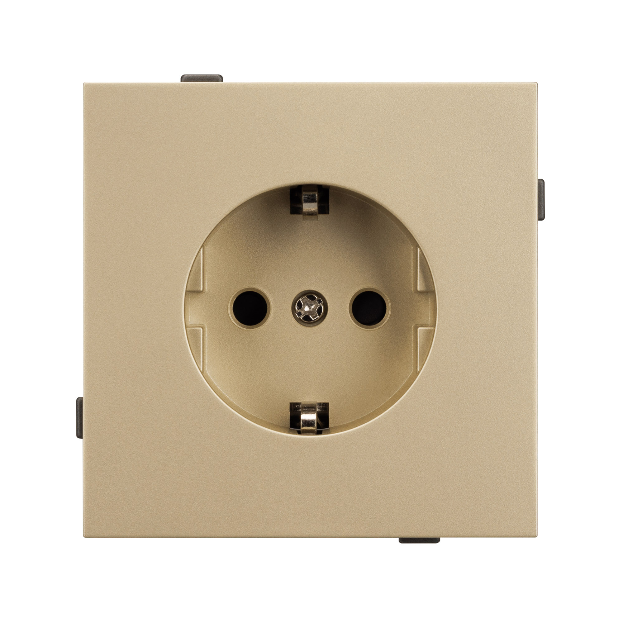 Механизм розетки с заземлением на 1 пост. Цвет - золотой, с Soft-Touch покрытием. Без фронтальной рамки. Уровень пылевлагозащиты IP20. Розетка устанавливается в стандартный подрозетник круглого сечения диаметром 60мм. Габаритные размеры: длина 71 мм, ширина 71 мм, высота 44 мм. Гарантийный срок 10 лет.