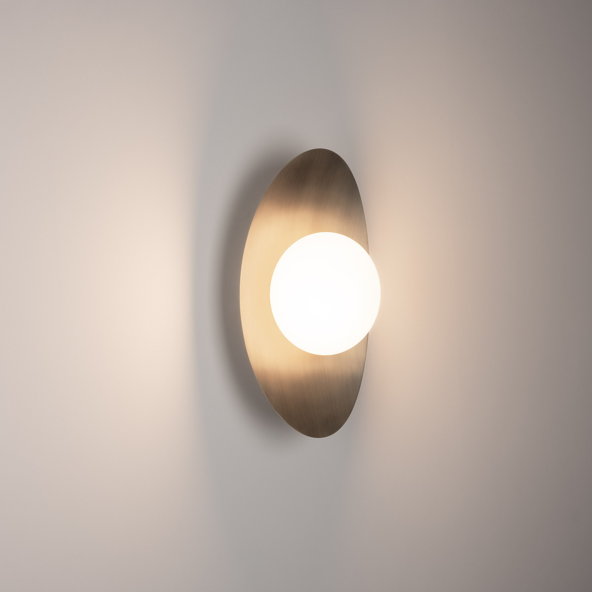 Декоративный настенный светильник. Мощность 6 Вт, св. поток 325-340 лм, 50-52 лм/Вт, теплый 2700 K,теплый 3200К, дневной 4000 K (переключаются), CRI>92, угол 150°, напряжение питания 230 В. Фигурный корпус из алюминия, гальванизированного в цвет бронза, экран из матового стекла, степень защиты IP20. Размер: габариты световой части: Ø145x70 мм, габариты чаши: Ø110 x 42 мм. Монтаж накладной. Встроенный блок питания: 12В DC, 0,75А, пульсация <2%. Встроенный диммер TOUCH-DIM.