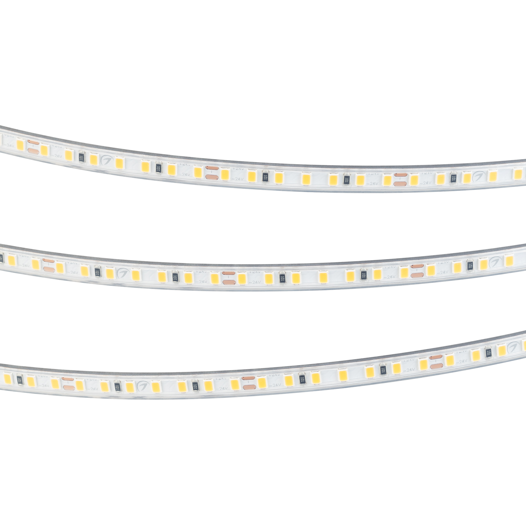 Узкая герметичная лента RTW серии A140. Степень защиты IP67, лента в силиконовой оболочке, устойчива к УФ излучению. Светодиоды SMD 2835, 140 шт/м, белого цвета свечения (6000K). Высокий индекс цветопередачи обеспечивает точное восприятие цветов при освещении любых коммерческих помещений и создании ландшафтного уличного освещения. Применяется для создания тонких световых декоративных линий в помещениях и на улице. В комплекте силиконовая заглушка под провод - 1 шт, силиконовая заглушка глухая - 2 шт. Обязательна установка на профиль.