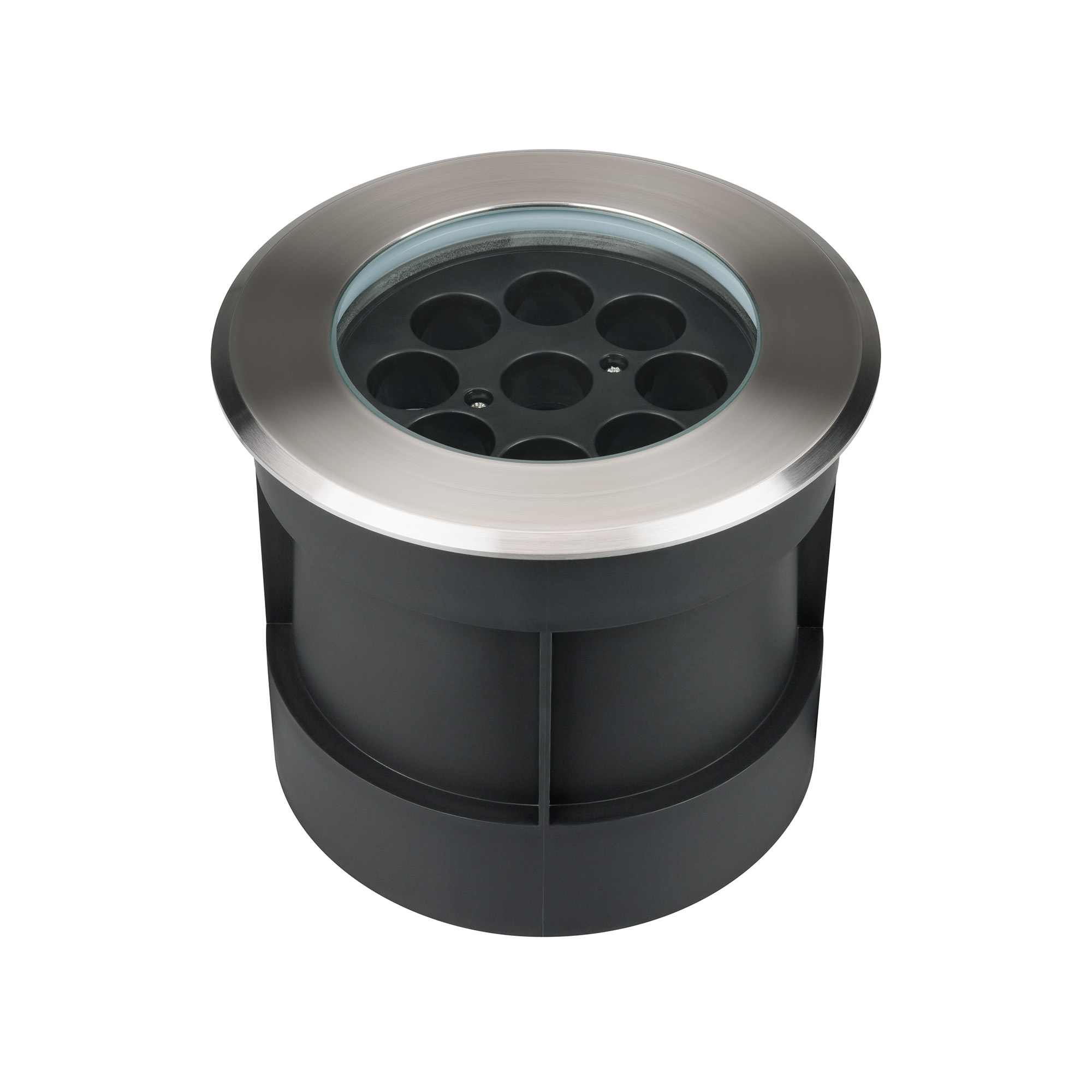 Встраиваемый светодиодный светильник LTD-DAFNA мощностью 16 Вт, теплого цвета свечения (3000К), со световым потоком 1440 лм предназначен для ландшафтного освещения парковых и садовых дорожек, придомовых территорий, а также декоративной подсветки фасада. Узкий угол излучения 10 позволяет создать четкий акцент на подсвечиваемом объекте. Ударопрочный круглый корпус из нержавеющей стали и алюминия Ø160x135 мм и экран из закаленного стекла толщиной надежно защищают оптический блок со светодиодом от внешних воздействий. Степень пылевлагозащиты корпуса на уровне IP67 рассчитана на длительное использование на открытом воздухе, а так же обеспечивает надежную работу в неблагоприятных условиях. Установка в отверстие ДxВ Ø145x130 мм. Светильник поставляется в сборе с драйвером и питающим кабелем, что позволяет легко и быстро подключить его к сети 230 В.