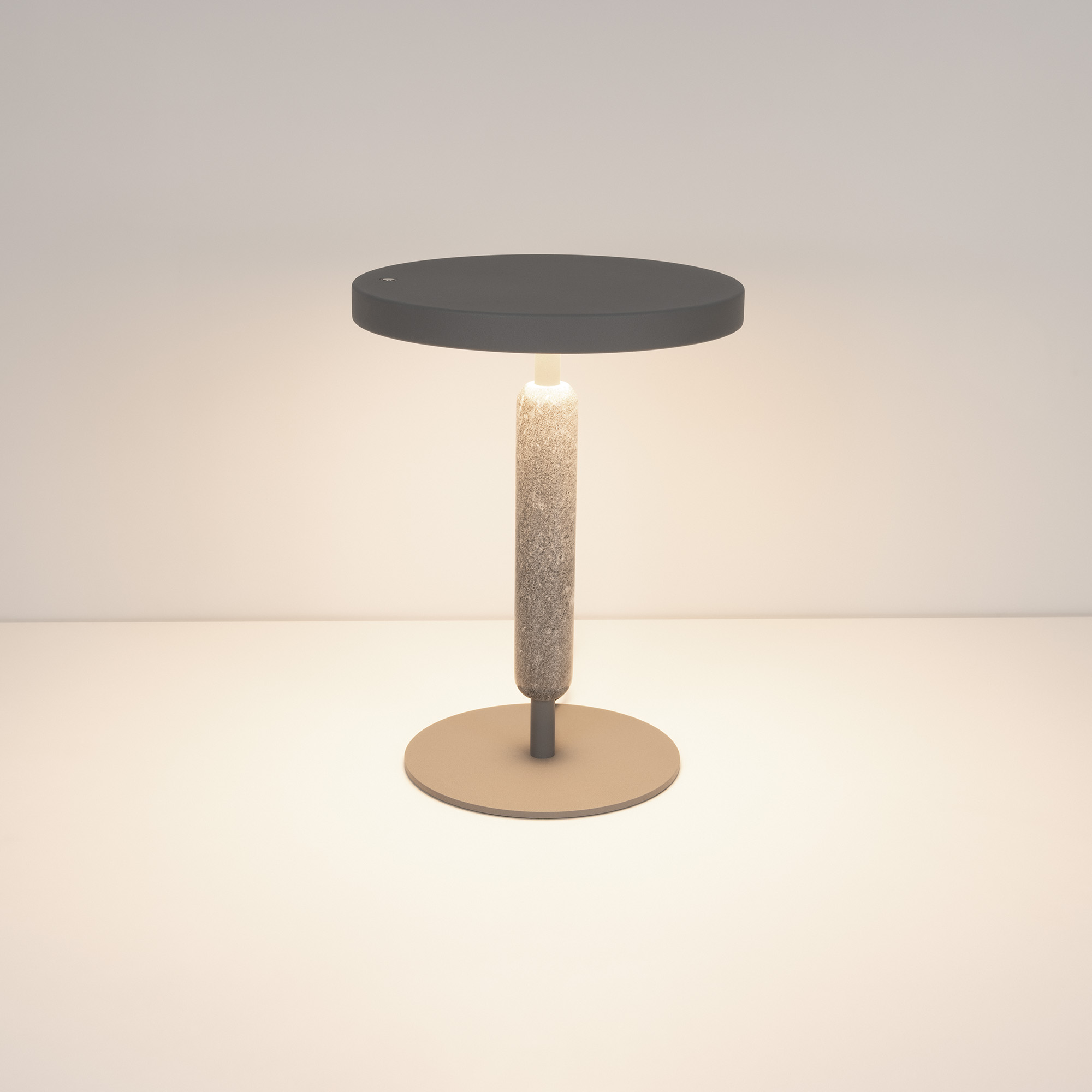 Настольный светильник ALYSS. С изменяемой цветовой температурой 2700/3200/4000К, переключается коротким нажатием на сенсорную кнопку на плафоне, диммирование происходит за счет ее удержания. Мощность 5 Вт, св. поток 195 лм, 39 лм/Вт, CRI>92, угол 110°, напряжение питания 230 В. Темно-серый корпус из алюминия, декоративная вставка из мрамора, степень защиты IP20. Размер: диаметр 225 мм, высота 300 мм. Пульсация <1%.