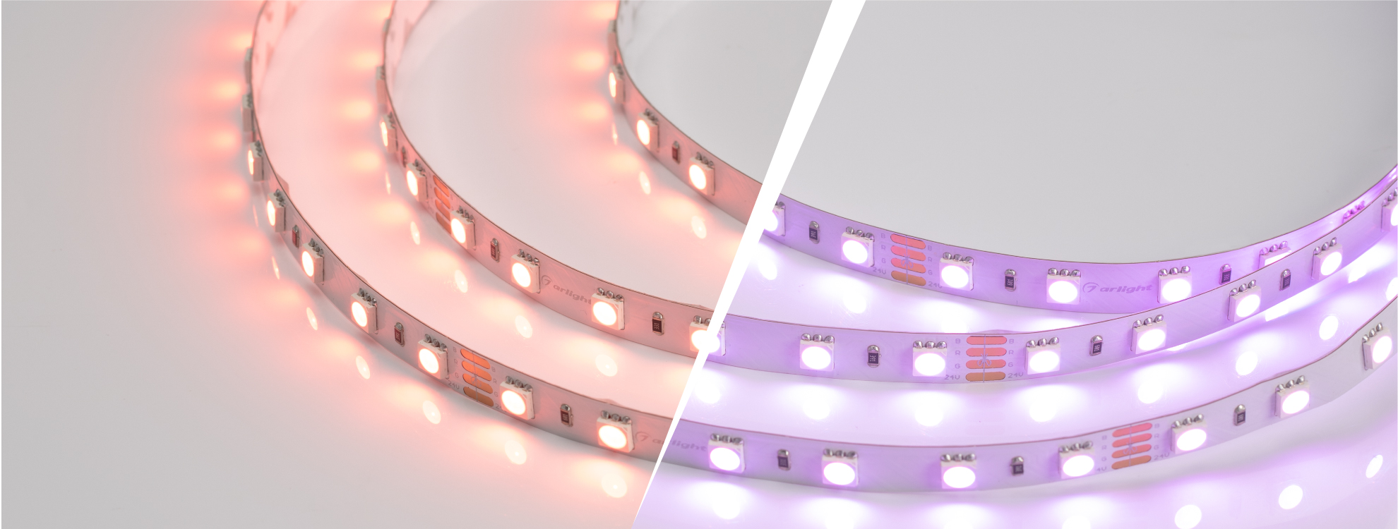 Универсальные RGB-ленты серии B60 имеют широкий спектр применения: открытые модели подойдут для создания декоративной подсветки в жилых и коммерческих интерьерах, в то время как ленты с высокой степенью герметичности можно применять для подсветки наружной рекламы и в помещениях с повышенным уровнем влажности.