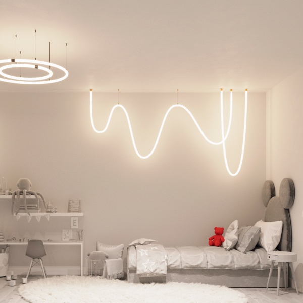 Гибкий неон MOONLIGHT с мягким 3D-свечением станет главным украшением в жилых и коммерческих пространствах. Создайте подвесные композиции в кафе, причудливые фигуры на стене в детской или неоновую альтернативу люстре в гостиной с новыми аксессуарами, которые доступны в белом, черном и золотистом цвете.