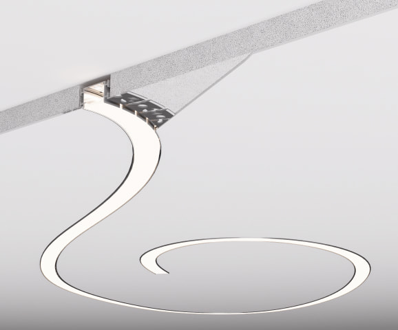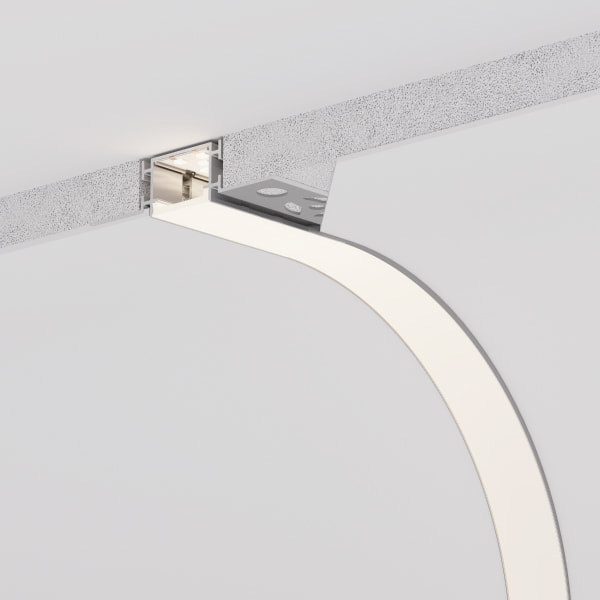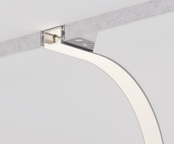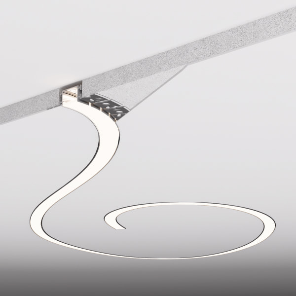 Гибкие алюминиевые профили FANTOM BENT со скрытым фланцем предназначены для создания встроенных линий света в конструкциях из ГКЛ. Уникальность серии — наличие моделей как прямой формы, так и с возможностью изгиба в вертикальной или горизонтальной плоскости. Сочетая разные виды профиля, вы сможете подчеркнуть контуры изогнутых элементов интерьера, а также создать круги и волнообразные световые линии, переходящие с потолка на стены.