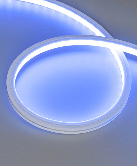 Вся поверхность ленты, включая торцевые заглушки, обладает равномерным свечением. Квадратная форма сечения позволяет легко устанавливать неон в профиль или крепить на архитектурные элементы.