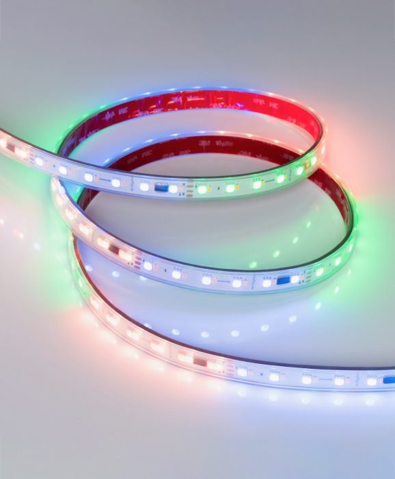 Среди новинок вы найдете как ленты с RGB-свечением, так и RGBW-модели с очень высоким индексом цветопередачи для белого канала. Это не только расширяет цветовую палитру, но и позволяет использовать ленту для подсветки витрин.