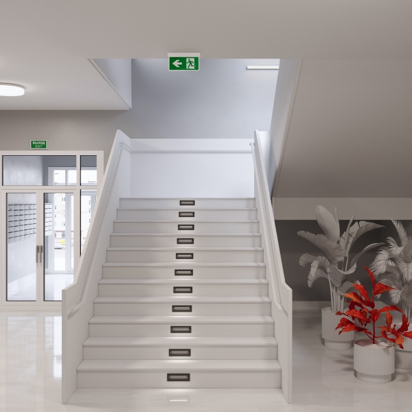 Для пространств с большой проходимостью подойдет панель EMG DIRECT. Благодаря повышенной ударопрочности поверхность панели выдерживает несильные удары (до 0.5 Дж). Также панель содержит дополнительный источник света, направленный вниз, что поможет лучше ориентироваться в пространстве.