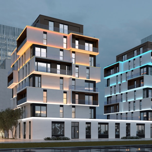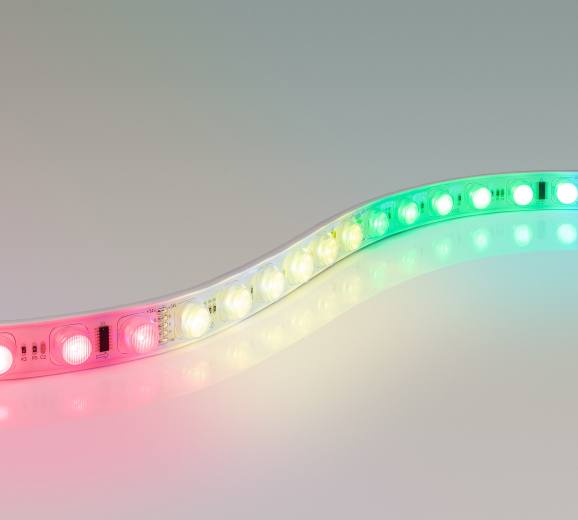 Благодаря степени защиты оболочки IP67 и высокому диапазону рабочих температур лента DMX FLT позволяет создавать динамические эффекты при оформлении архитектуры и наружной рекламы.