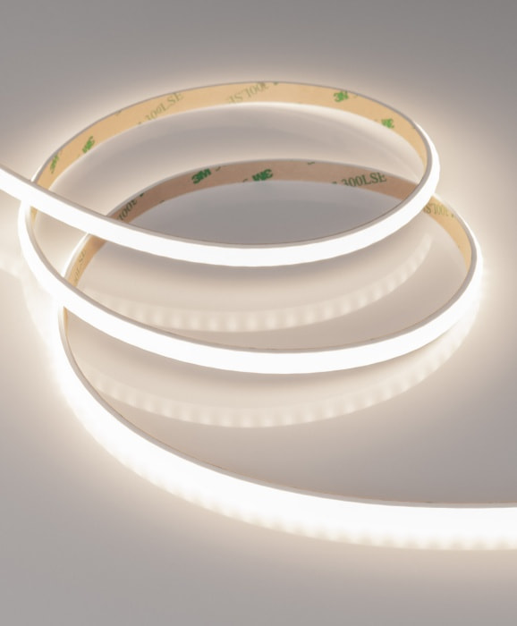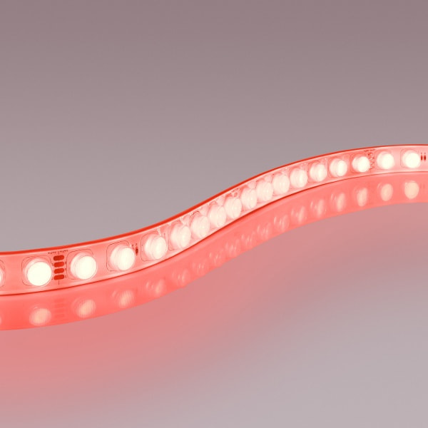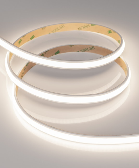 Матовая силиконовая оболочка образует идеально ровное свечение по всей поверхности ленты, включая торцевые заглушки. За счет высокого индекса цветопередачи (CRI>90) свечение гибкого неона не искажает цветовую гамму окружающих предметов, что делает новинку отличным решением для оформления витрин.