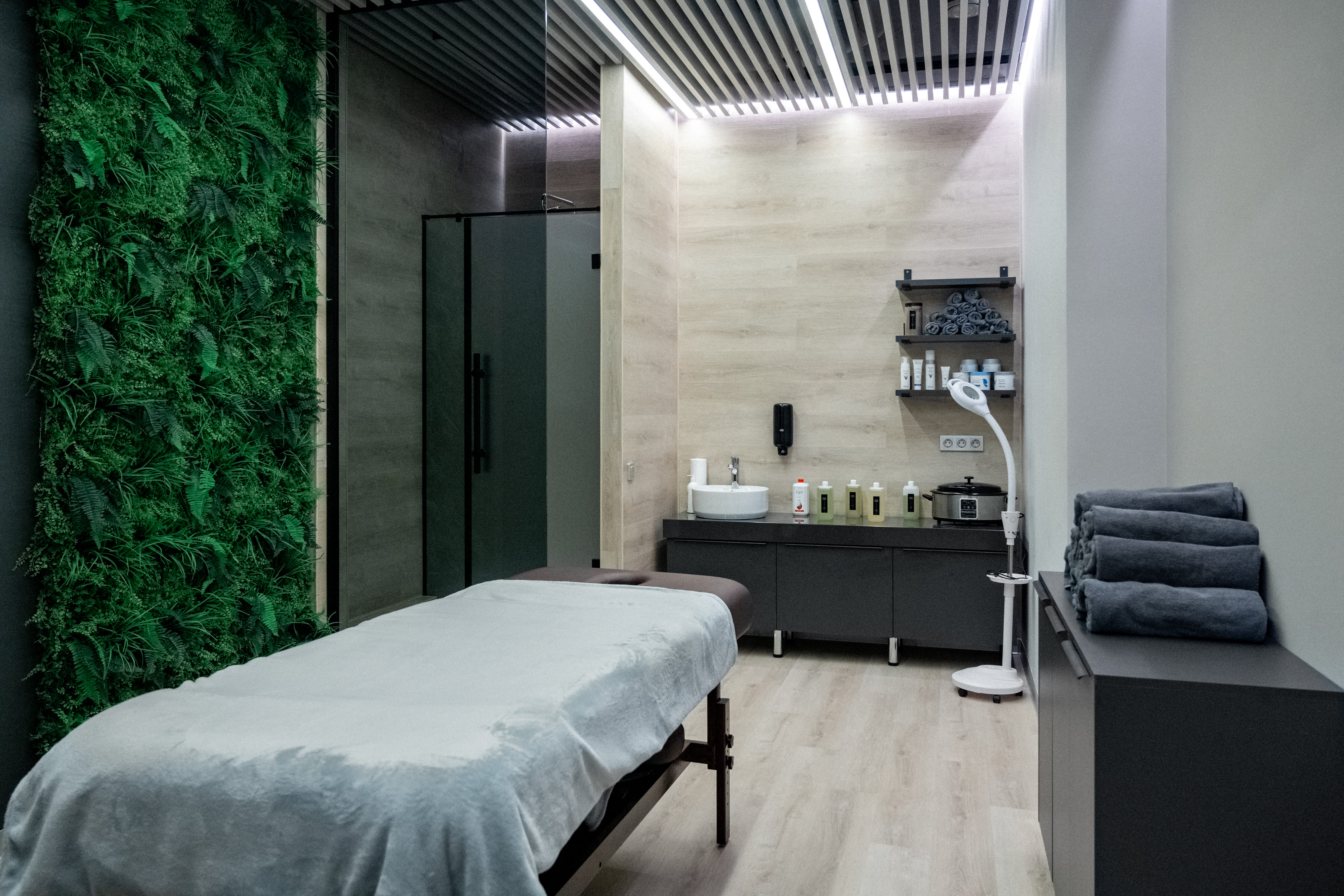 Для удобства посетителей зеркала в раздевалке оборудованы подсветкой. Матовый опаловый экран ARC обеспечивает мягкое равномерное свечение. При необходимости гости могут управлять яркостью подсветки с помощью роторной панели SMART.