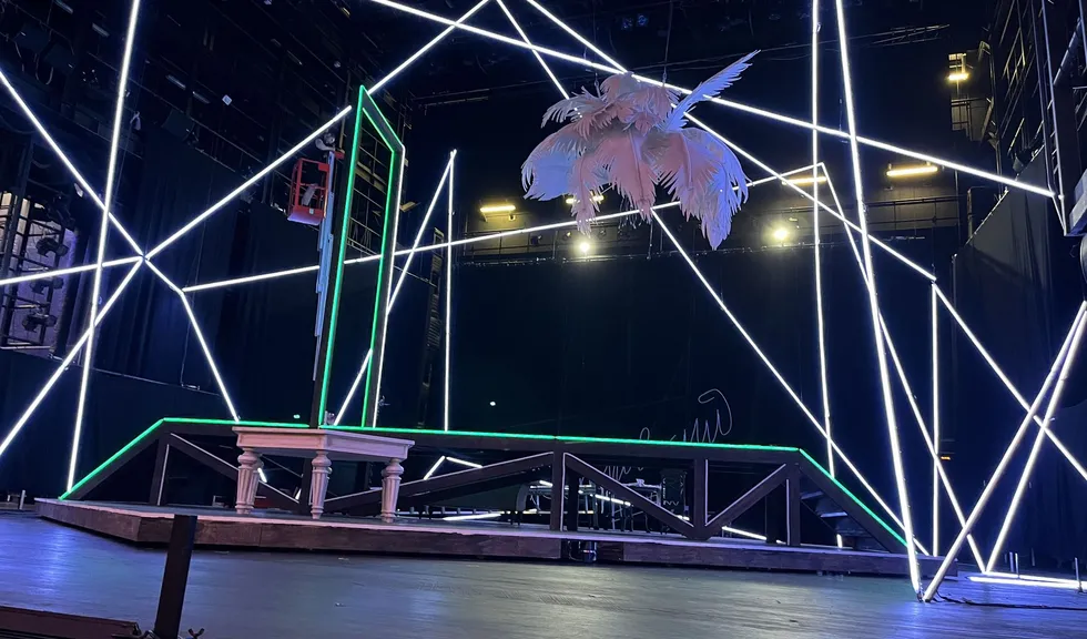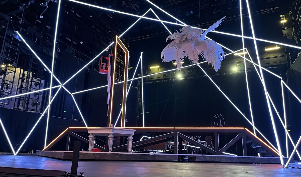 Композиция из ломаных линий света, напоминающая переплетения паутины, — это прекрасная альтернатива привычным театральным декорациям. Идея осуществилась благодаря круглому гибкому профилю WPH FLEX и RGB-ленте. Управление по протоколу SPI позволяет не только настраивать любые оттенки свечения ленты, но и создавать различные динамические эффекты, что немаловажно для оформления сценической площадки. Возведенный на ней помост также очерчен линией света по контуру, что выделяет конструкцию на темном фоне.